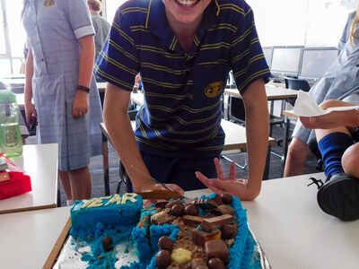 Of course, each Home Group has their own traditions as well, guided by the incredible team of Oats Home Group Teachers. The Year 7s enjoy sharing stories through food in ‘Cultural Crunch’, while the Year 9s donate a gold coin for each ‘Cake Tute’ to raise money to purchase an Oxfam goat (or even cow). The Year 8s created a spectacular Home Group banner this year, with each stitching their own name to form a colourful mural to adorn the wall of their Home Group.